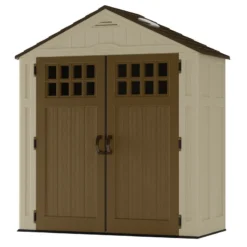 Auckland 7 x 7 ft antique distressed wood storage shed with high ceilings and victorian windows