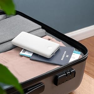 Anker 313 Power Bank is incredibly slim and light for its large cell capacity. It can charge a phone up to three times and most tablets once. Weighing just half a pound. it’s only slightly heavier than a baseball and is designed to fit comfortably in your palm or pocket; perfect for work or traveling.