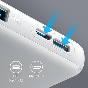 Rapid RechargeRecharge PowerCore using either the micro USB or USB-C ports. Micro USB cable included. USB-C cable not included. The USB-C port is input-only and cannot charge other devices |