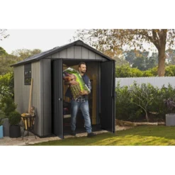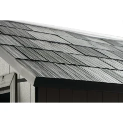 Auckland 7 x 7 ft antique distressed wood storage shed with high ceilings and victorian windows