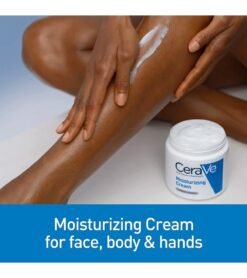 HYALURONIC ACID MOISTURIZER With hyaluronic acid. ceramides and MVE technology for 24 hour hydration. Rich. velvety texture that leaves skin feeling smooth. it is absorbed quickly for softened skin without greasy. sticky. feel. ESSENTIAL CERAMIDES Ceramides are found naturally in the skin and make up 50% of the lipids in the skin barrier. All CeraVe products are formulated with three essential ceramides (1. 3. 6-II) to help restore and maintain the skin’s natural barrier. DRY SKIN RELIEF A deficiency of ceramides in skin can often be associated with dry skin. which can feel itchy and look flaky. CeraVe Moisturizing Cream was shown to increase the skin’s level of ceramides after 4 weeks. DERMATOLOGIST RECOMMENDED CeraVe Skincare is developed with dermatologists and has products suitable for dry skin. sensitive skin. oily skin. acne-prone. and more. This skin care product comes with a lid seal GENTLE DAILY MOISTURIZER For face and body or can be used as a hand cream for dry skin relief. Holds National Eczema Association (NEA) Seal of Acceptance. Fragrance free. paraben free. allergy-tested. and non-comedogenic.