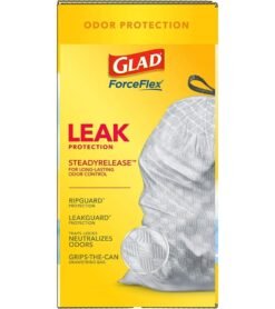 FORCEFLEX TECHNOLOGY: Glad’s patented dual-layer protection is designed to give extra flex as it expands around sharp edges and heavy loads while resisting punctures. rips and tears