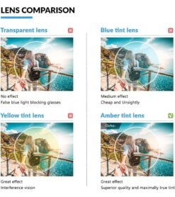 Protection for Your Eyes -Alleviates visual fatigue and discomfort from long periods of web surfing. gaming and working under fluorescent lights with UV400 protection and glare reduction.Reduce Eyestrain -Enjoy your digital time. NO worry about eye fatigue. blurred vision and headache.Better Sleep -Amber lenses block more blue rays than others and see more realistic.You’ll never have trouble with sleeping again.Excellent TR90 Material -Ultra-lightweight and flexible TR90 nylon frame material for durability and comfortable long-term wearing. Casual frame design keeps you looking professional and stylish while working or playing video games.Product Dimension -Lens Width: 52mm(2.05inches). Lens Height: 42mm(1.65inches). Temple Length: 140mm(5.51inches). Nose Bridge: 14mm(0.55inches)