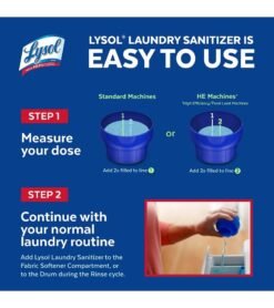 EASY TO USE; WORKS IN ALL STANDARD & HE MACHINES: Add to the Fabric Softener compartment or during the rinse cycle to sanitize laundry and eliminate odor causing bacteria