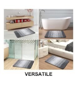 Heavy Density Microfiber The bath mats are made up of 1.18-inch height premium thick. soft and fluffy microfiber. where with the help of unique fiber locking technique. the fluff is thicker. making it great for bathroom. vanity. vacation home. master bedroom. kids’ bathroom. guest suite.Non-Skid TPR Backing The mat is equipped with TP rubber backing and not PVC or glue. to provide you with slip free experience and durability. Please note not to place the mat on wet surface and make sure that the floors are dry underneath the rug. to prevent slippage.Ultra-Absorbent & Quick Dry The soft shaggy microfiber fabric. will not let the water drip on to the floors. when you are stepping out of your bath. shower or getting ready by the sink. Further. there is moisture trapped inside the mat’s deep pile. which allows the rug to dry quickly and cleanly.Easy Maintenance OLANLY bathroom mats can be machine washed separately with cold water. mild detergent which has no chlorine or bleach and tumble dry on low speed or hang dry. Also. the color will not fade and will stay vibrant for many years even with after washing and drying many times.Beautiful D??|cor. Gifting & Multipurpose The mats have unique gradient color stripe design. to provide beautiful d??|cor to nearly any space in your bathroom. The mats work perfectly in front of your single or double sink. shower. bathtub or anywhere you want to have support and warmth for your feet. Further. the mats make a perfect gifting choice for your friends and family during Christmas. Mother’s Day. Father ‘s Day or any other special occasion.