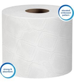 Two-ply. 1.150′ roll is longer than six standard bathroom tissue rolls