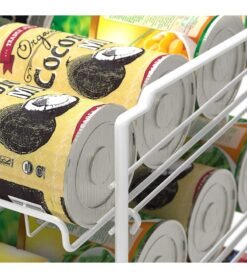 Six adjustable plastic dividers get different size can. jars.beverage can aligned and organized